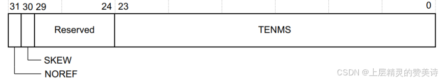 [23:0] | TENMS | 对于 10 毫秒(100Hz)定时的重新加载值,会受到系统时钟偏差误差的影响。如果该值读取为零,则校准值未知。 |