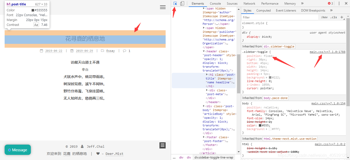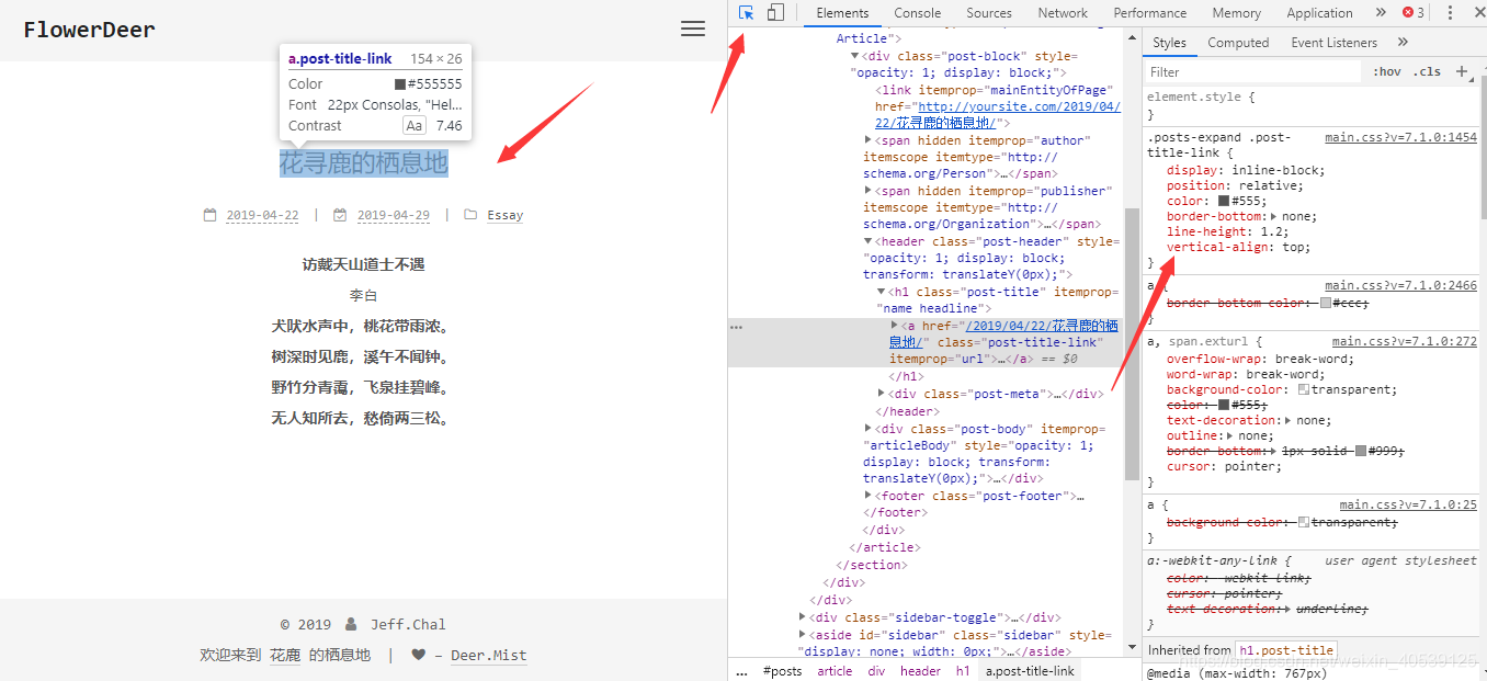 点击需要自己DIY的模块,我们可以暂时直接在更改对应数值进行更改样式,直到得到自己满意的效果,最后才去next里的一些文件进行部分的添加和修改来达到我们的目的。