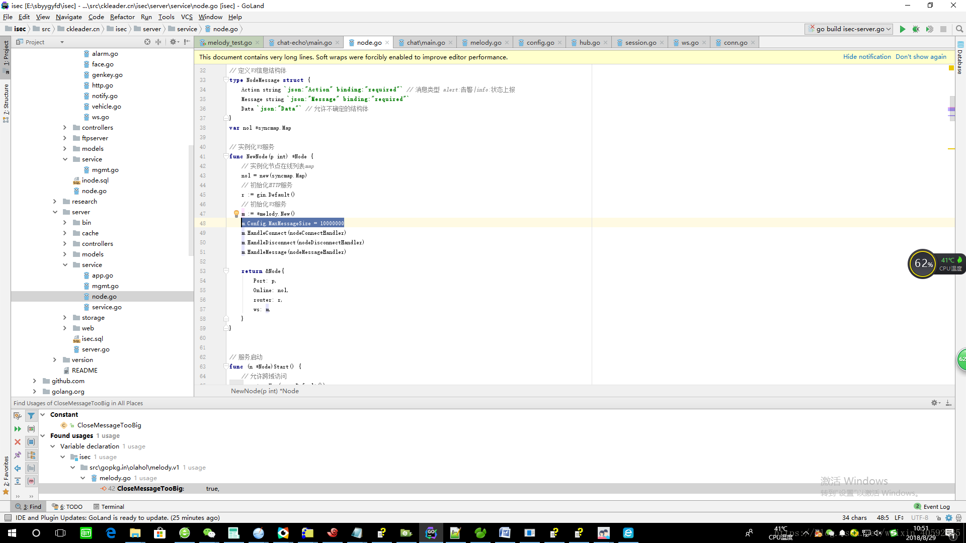 go 语言写的ws客户端连接 melody 向 服务器的melody发送base64图片数据时, 报close 1009 (message too big).
