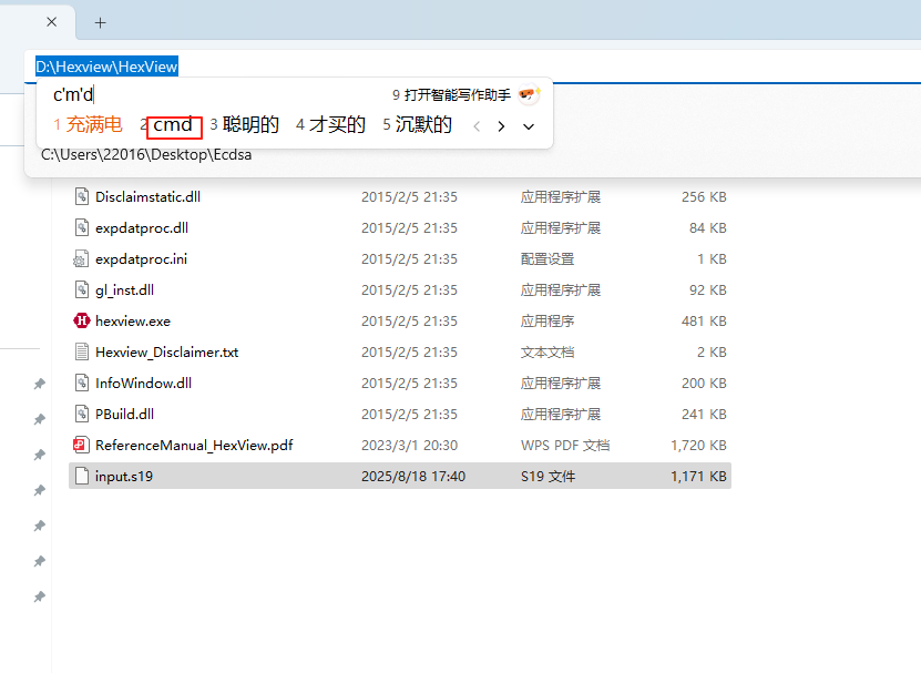 之后我们在hexview文件夹下使用cmd: