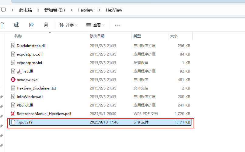 其中将要修改的文件的文件名改为input.s19