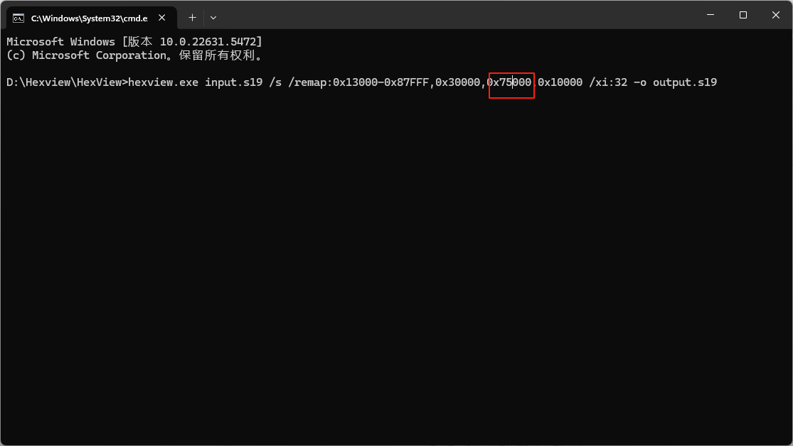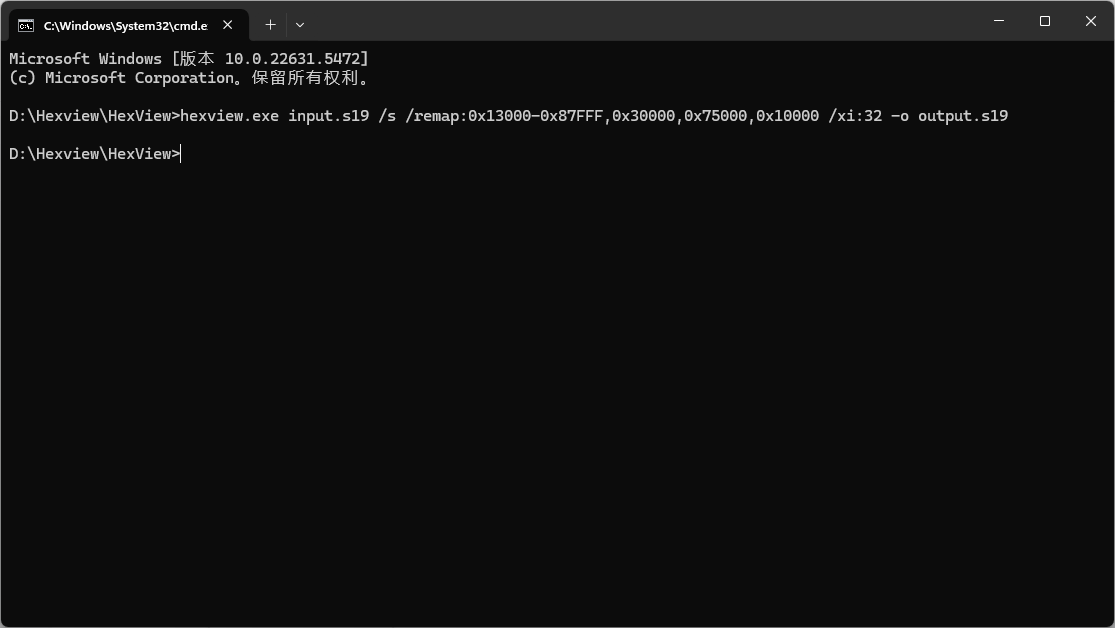 hexview.exe input.s19 /s /remap:0x13000-0x87FFF,0x30000,0x72000,0x10000 /xi:32 -o output.s19