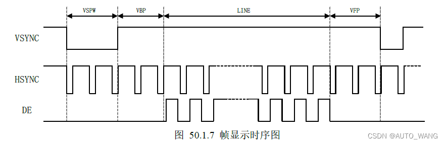 显示一帧所需要的时间就是:VSPW+VBP+LINE+VFP个行时间。