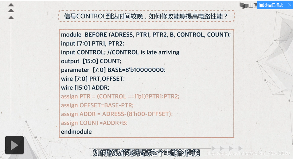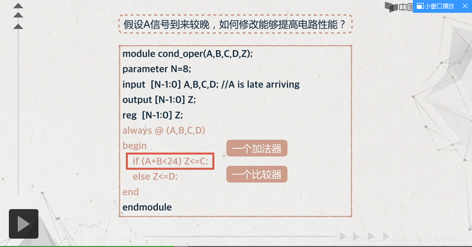 解释:单if语句中,有一个控制信号到来的比较晚,如何进行优化呢: