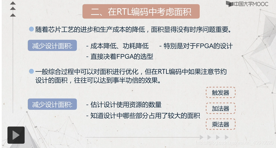 解释:电路中公共单元多,可通过资源共享减小面积,但是一般来说,共享会导致性能下降,一般是面积和性能中做取舍;
