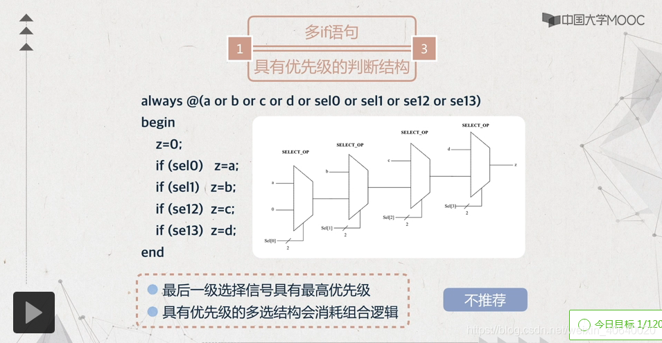 解释:尽可能把信号单独拿出来,放在离出口最近的选择器上;