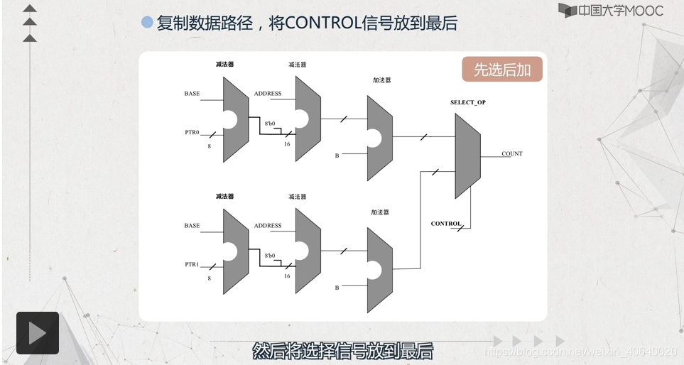 解释:第一种的数据延迟为一个加法器和选择器,控制的延迟为选择器;