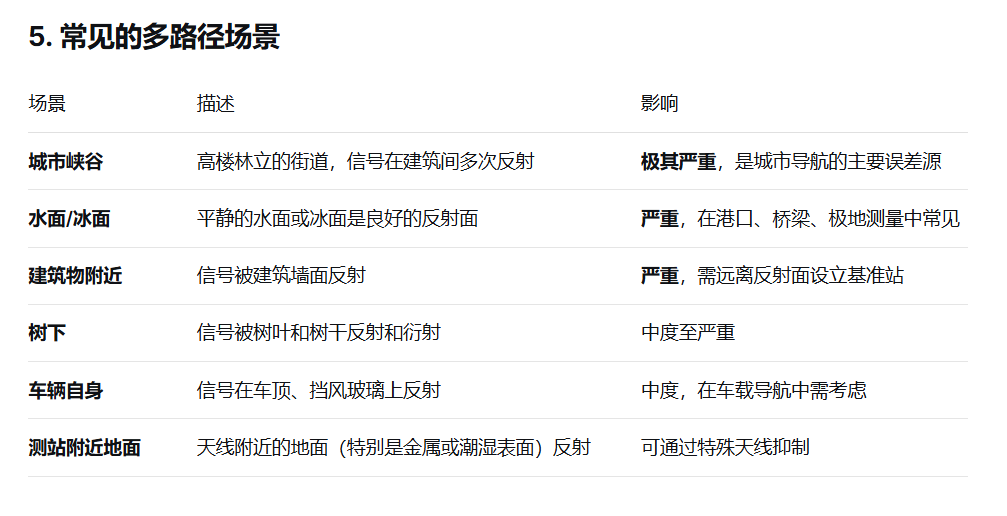 定义:多路径误差是由非直达导航信号引入的测距误差。多路径效应 是指GNSS模组除了接收到直接从卫星发射的信号外,还接收到了经周围物体(如地面、建筑物、树木等)反射后的信号。直射信号与反射信号叠加,导致观测值(伪距和载波相位)发生偏差,从而影响定位精度。