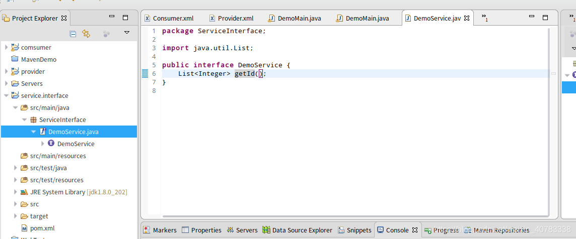 (1.新建maven普通工程Interface,新建包和公共service接口,最后maven install安装到本地Repository中,提供给provider和comsumer。