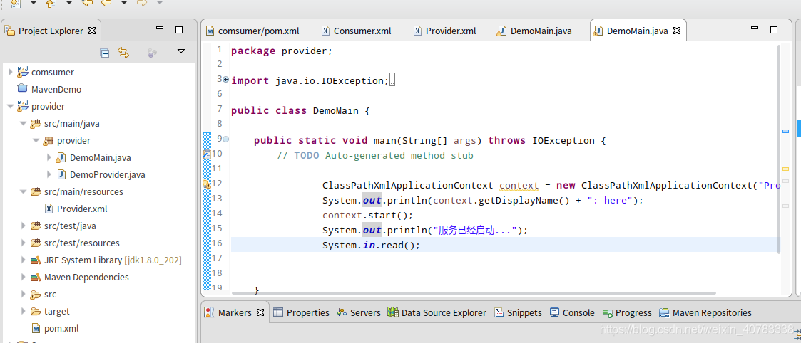 ClassPathXmlApplicationContext context = new ClassPathXmlApplicationContext("Provider.xml");