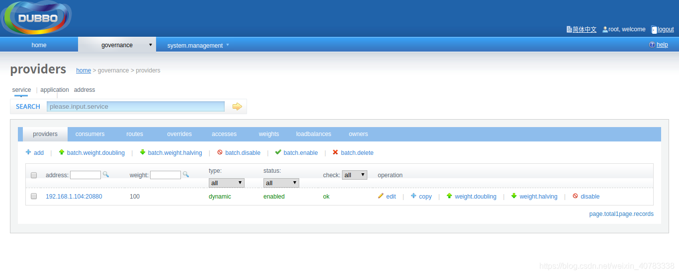 打开链接:http://localhost:8080/dubbo-admin-2.6.0/
