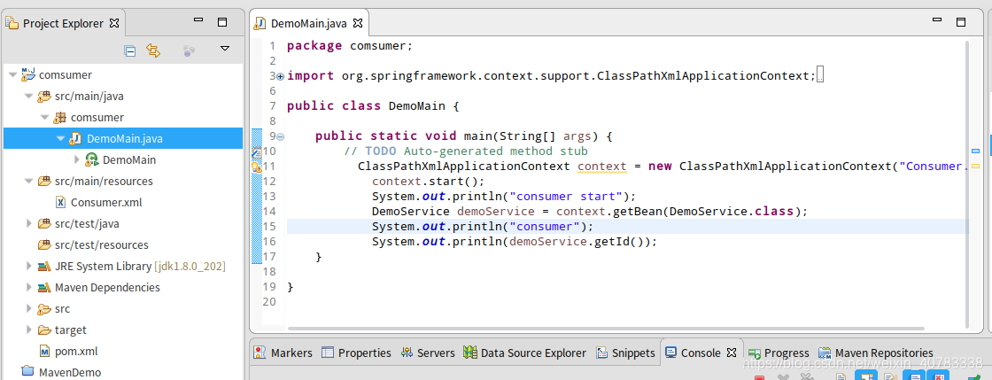 ClassPathXmlApplicationContext context = new ClassPathXmlApplicationContext("Consumer.xml");