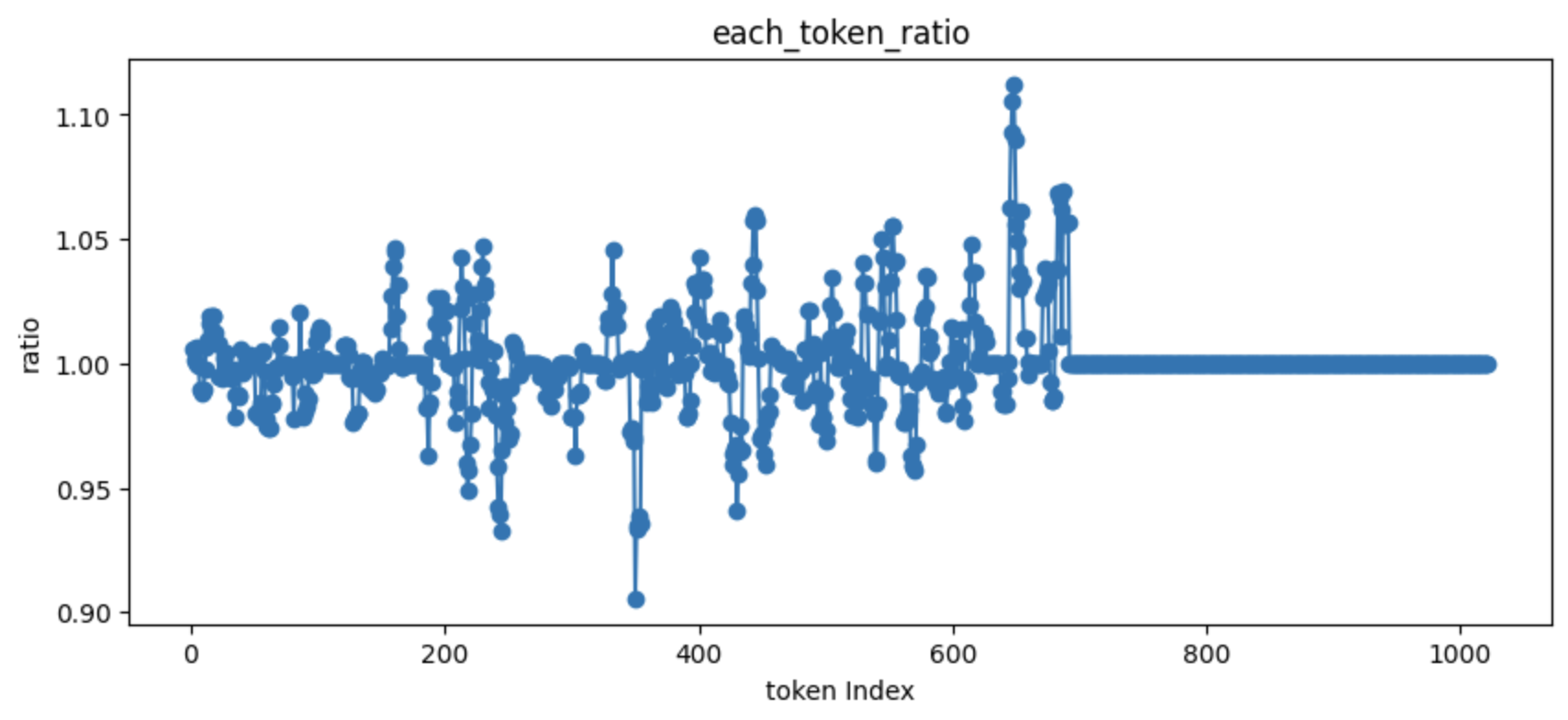 这是和上面同一个response,每个token的重要性权重(新旧策略选择这个token的概率比)