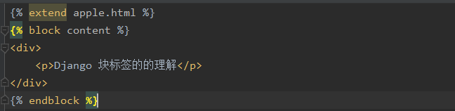 {% extends 'apple.html' %}继承上面的apple.html文件。(PS:下图的apple.html忘记加引号了)