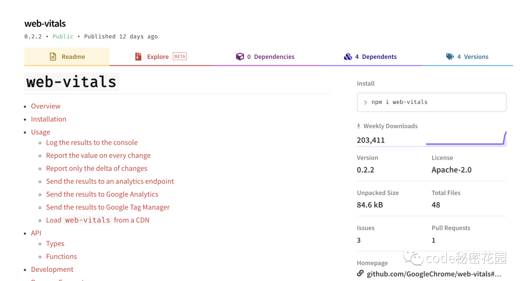 现在你可以使用标准的 Web API 在 JavaScript 中测量每个指标。Google 提供了一个 npm 包:web-vitals,这个库提供了非常简单的 API,测量每个指标就像调用一个普通函数一样简单: