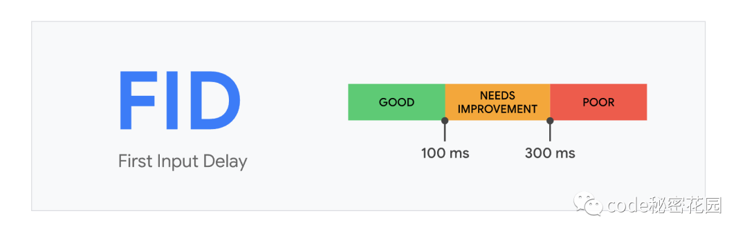 FID( First Input Delay) 即记录用户和页面进行首次交互操作所花费的时间 。FID 指标影响用户对页面交互性和响应性的第一印象。为了提供良好的用户体验,站点应努力使首次输入延迟小于 100 毫秒。