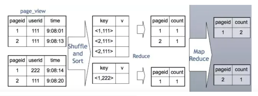 - 也就是说Map分发到Reduce的时候,会使用pageid和userid作为联合分发键,再去聚合(Count),输出结果。