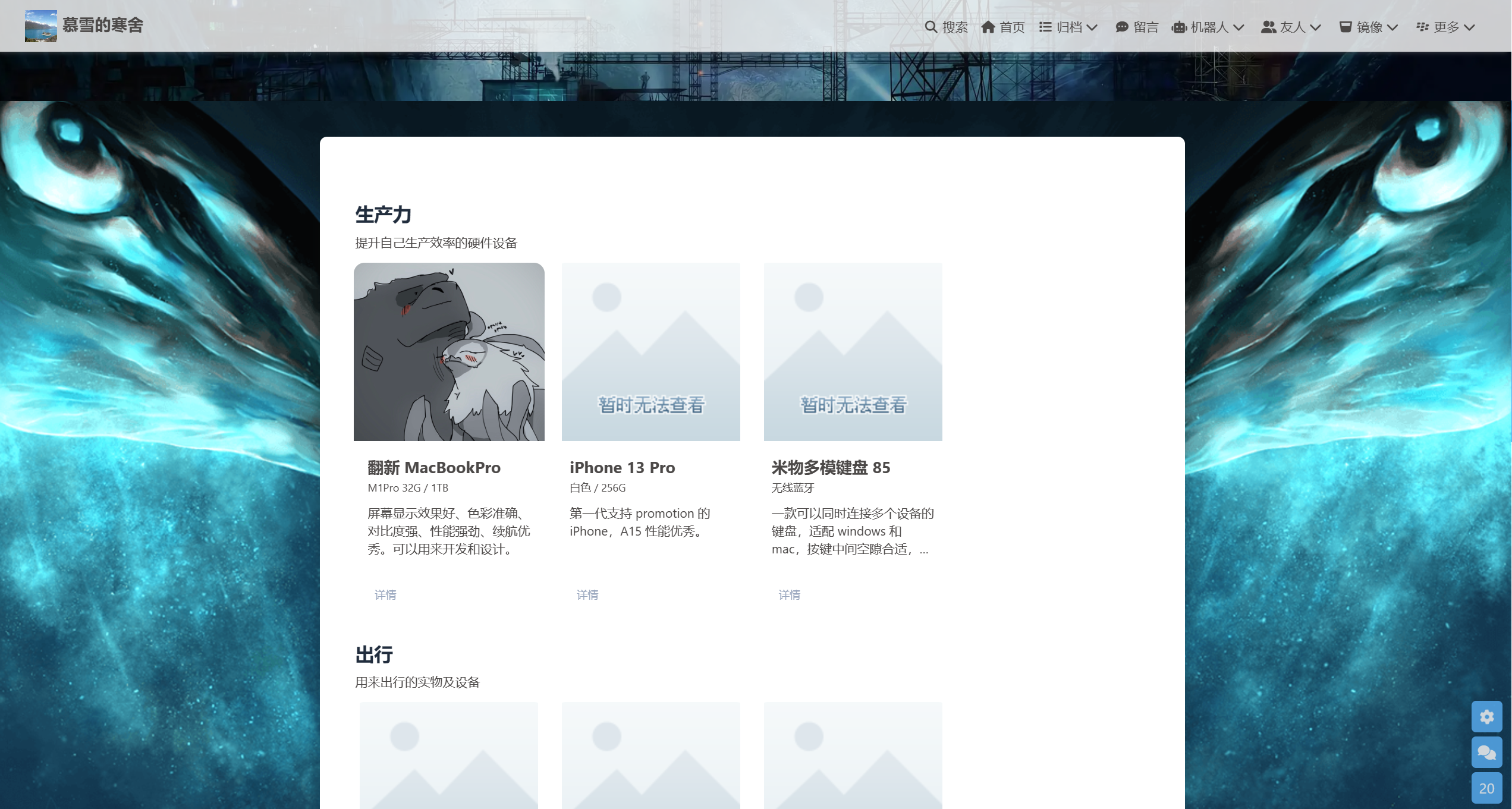 【Hexo】hexo-butterfly主题添加装备展示页面 在翻开往的时候看到了一位老哥的博客里面正好有这个教程,整了一下发现效果还不错!Hexo的Butterfly魔改教程:我的装备,分享你在用的设备 | 张洪HeoHexo博客添加自定义css和js文件 | Leonus注:文中的代码部分均引用自原博客添加文件到hexo-butterfly主题中前置条件首先,魔改hexo主题...
