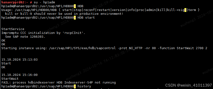 启动HANA数据库报错:
