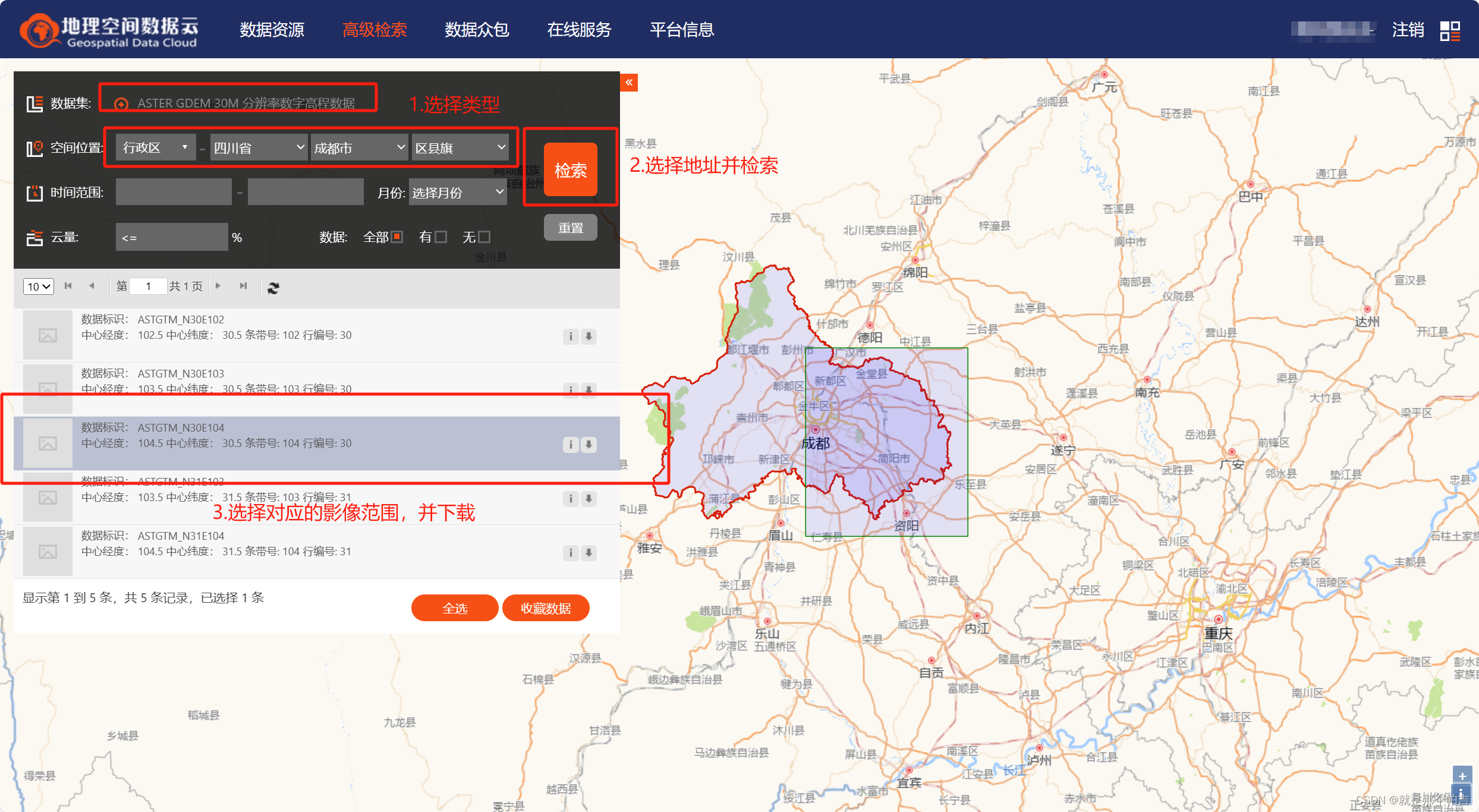 由于我也没有高程数据,所以在地理空间数据源中下载。