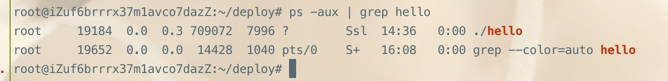 此时我们的容器已经成功跑起来了,接下来获取容器中执行程序hello的PID: