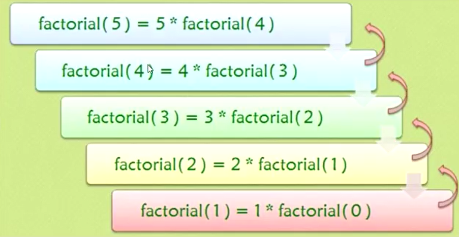任何递归函数,它的原理都是一样的。定义一个递归函数,在递归函数里面它其实就是不断得调用自身,然后设置递归函数的时候,一定不能忘了递归条件。