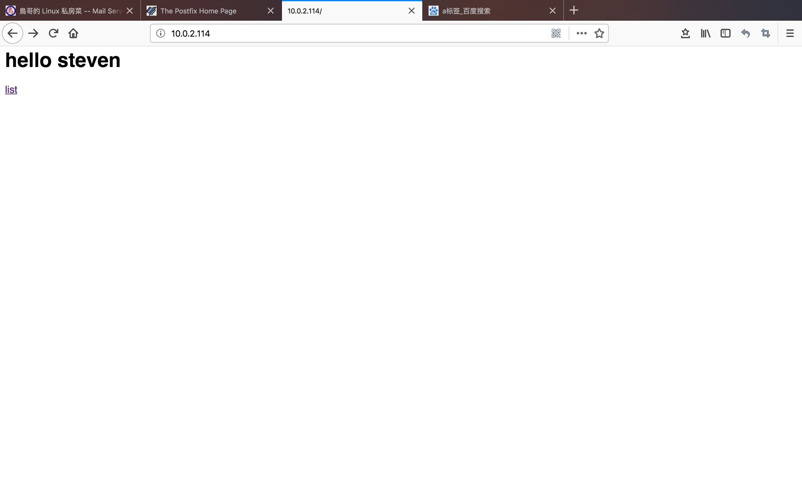 在/var/www/html/ vi index.html<h1>hello steven</h1>