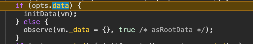 这里我们熟悉的一些配置出现了:props methods data computed watch,这节我们主要探讨data和methods,所以接下来往下看