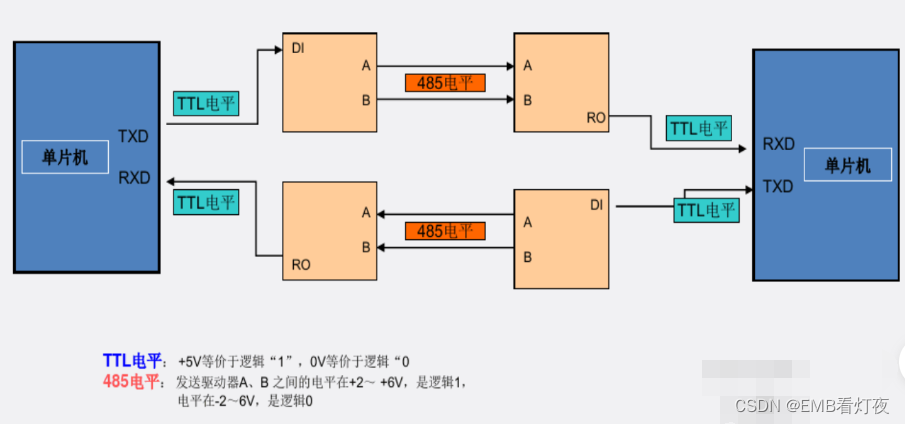 ** RO和DI端分别为接收器的输出和驱动器的输入端