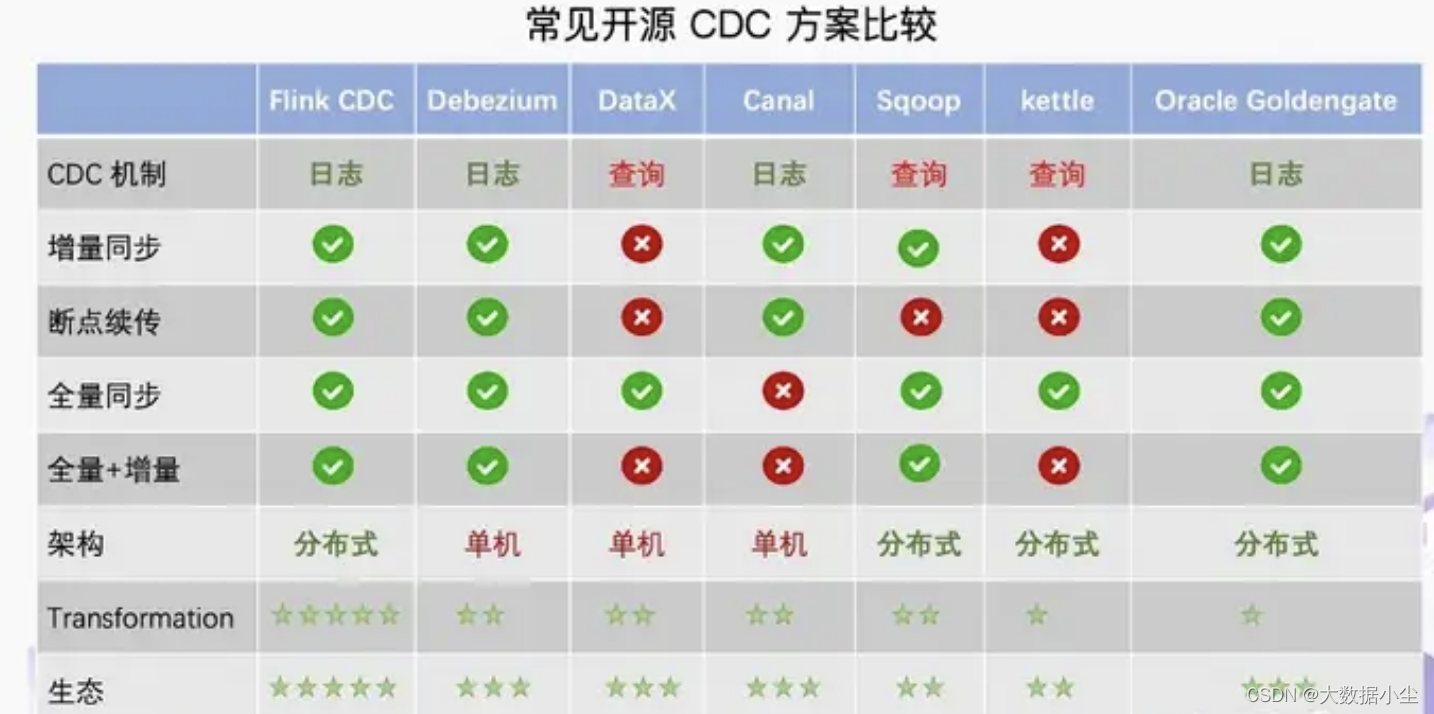 Flink CDC 实现原理 如果后期有个binlog的chunk 过来,比如是105,150和160的数据发生了变化,那么我们就会针对相应的值改动,并不会改动全部的值,改动效率就比较高了;简单点来说,就是一旦开启同步数据的事务了,Debezium 就会对全局加锁,先把当前加锁的这个时间点的全部数据select 出来,这需要一点时间的,然后这个时间节点的select 事务啊,update 事务啊,都会被阻塞,严重的时候会导致mysql 的整个进程都被hang 住了,提供不了服务了,所以我们Flink 就要进入2.x 时代。