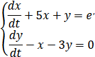 [x,y]=dsolve('Dx+5*x+y=exp(t)','Dy-x-3*y=0', ...