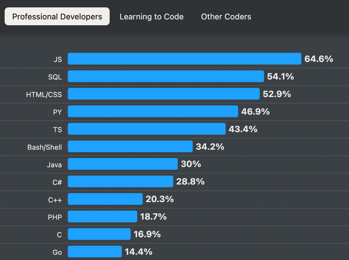 看到它如此受欢迎,我有点惊讶,但我不得不提醒自己,流行度并不等同于时髦度 -- C# 与时髦不沾边。C# 很少登上 Hacker News 头条(我认为相对于用户群而言,它可能是讨论最少的语言),就像你不会经常看到人们赞美在 Linux 主机上部署软件或使用关系数据库的优点 -- 但这并不意味着这些不是受欢迎的选择,而是意味着有很多人只是默默地使用它。