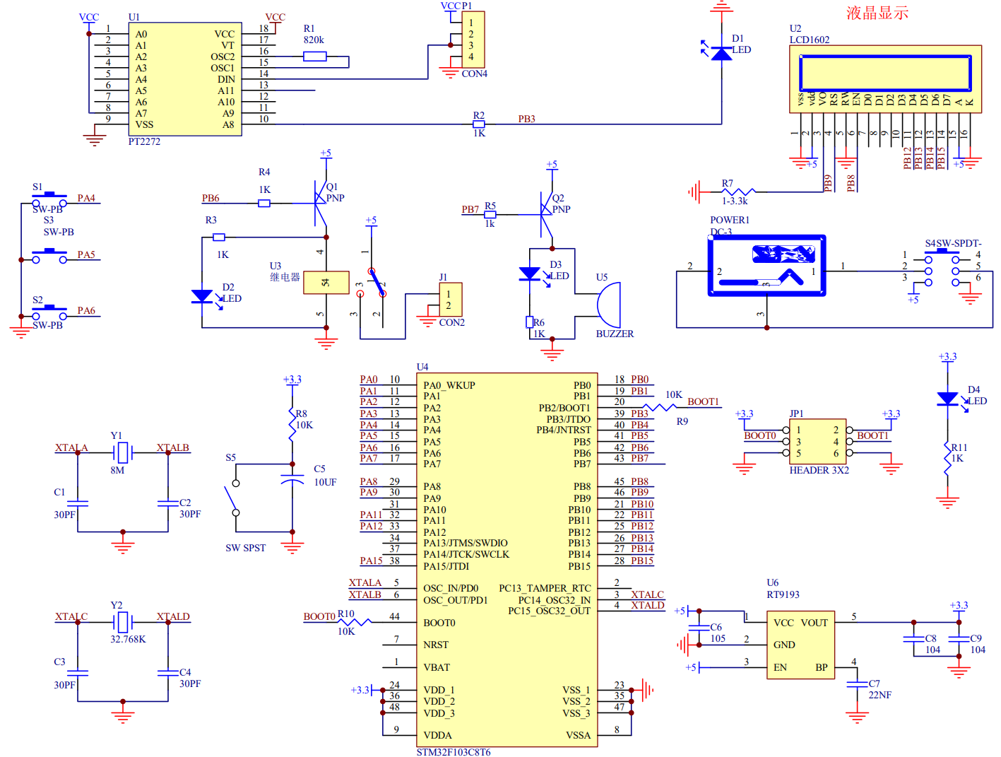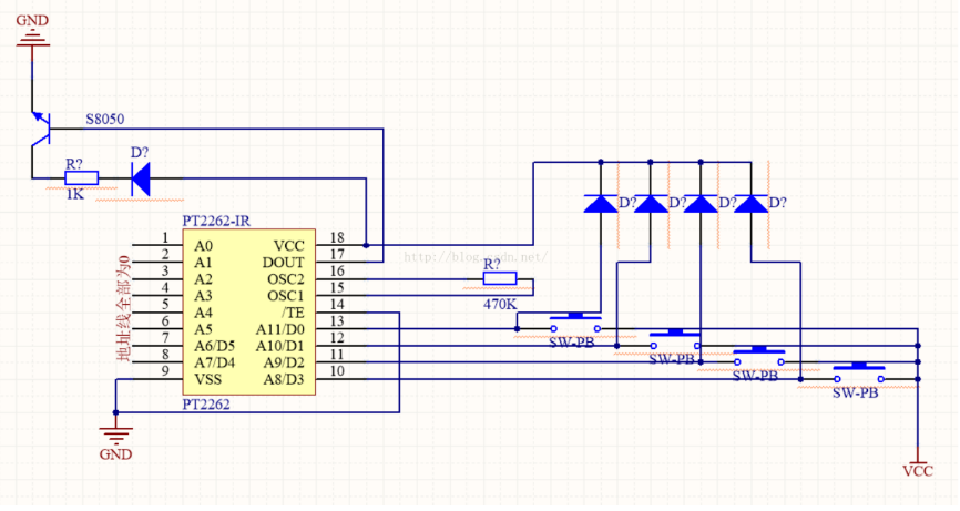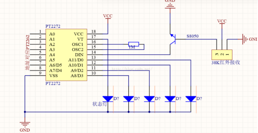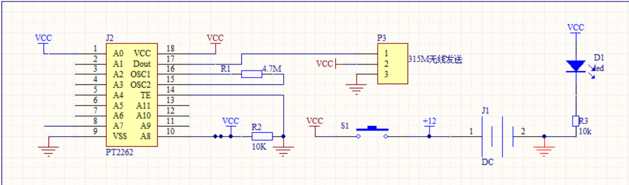 图3.6 PT2262/2272电路图