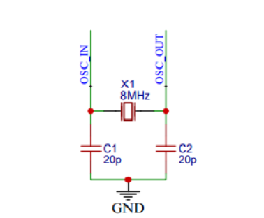 晶振电路如图3.4所示。STM32103C8T6晶振电路是保障芯片稳定运行的关键环节。该电路主要包含一个外部晶振和两个负载电容。外部晶振常见为8MHz,它宛如一个稳定的“时钟发生器”,产生周期性的电信号,这一信号是整个电路的时间基准。两个负载电容,通常取值在16pF至33pF之间,它们与晶振紧密配合。其作用是微调晶振的振荡频率,确保产生的信号精准稳定。在连接方面,晶振的两端分别接入芯片的OSC_IN和OSC_OUT引脚,负载电容一端连接晶振引脚,另一端接地。晶振电路产生的时钟信号,会输入到STM32103C8T6内部的时钟管理单元,经倍频、分频等操作后,为芯片内不同功能模块,如CPU运算、数据存储与传输等,提供精准的时钟驱动,保障各模块有条不紊地协同工作。