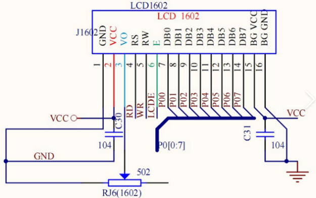 图3.12 显示屏电路图