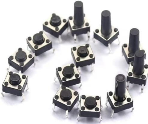 按键原理图如图3.16所示,实物图如图3.17所示。按键模块电路在各类电子设备中是不可或缺的人机交互接口,在音乐电子门铃中,其作用尤为关键。这个电路主要由轻触按键与上拉电阻构成。轻触按键采用简单的机械结构,当用户按下按键,内部金属弹片瞬间闭合,电路导通;松开时,弹片复位,电路断开。电路连接上,按键一端接地,确保常态下为低电平;另一端经上拉电阻连接到电源正极,平时保持高电平状态。当按键被按下,该连接端电平迅速被拉低,产生一个明显的电平跳变信号。微控制器持续监测此引脚电平,一旦捕捉到电平由高变低,就能精准识别用户按键操作,进而触发门铃发声、切换曲目或调整音量等功能,为用户提供便捷的控制方式。