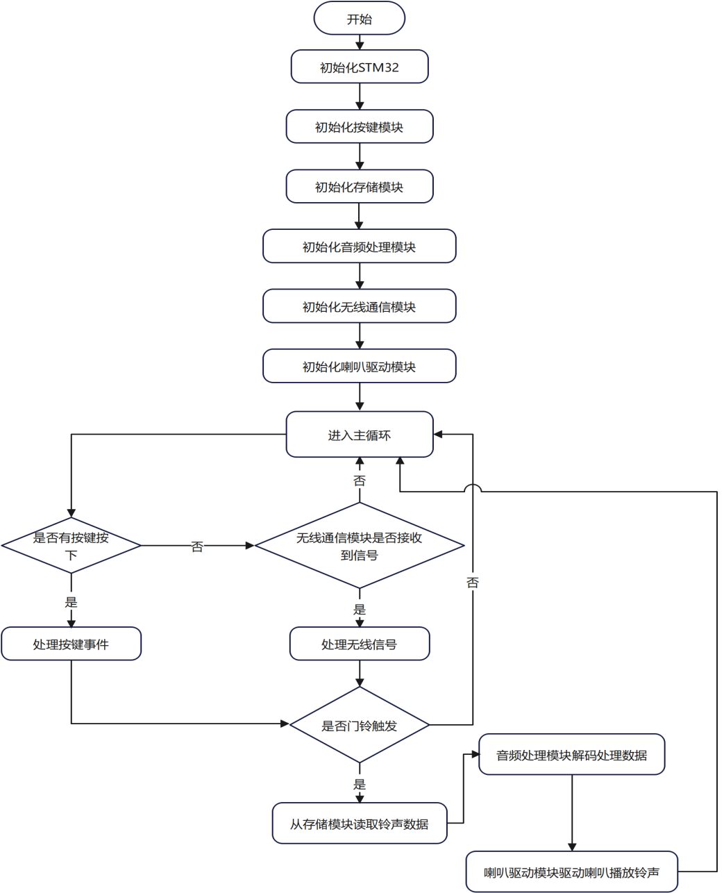 在系统设计方面,以STM32微控制器为核心,协同无线通信模块、存储模块、音频处理模块、按键模块及喇叭驱动模块等,构建了完整的硬件架构,并通过精心编写的软件程序,实现各模块间的高效协作。无线通信模块确保了门铃可远程控制,突破了传统门铃仅能本地操作的局限;存储模块能够存储多首音乐,满足用户多样化的铃声需求;音频处理模块则对音乐数据进行精准解码与处理,配合喇叭驱动模块,实现了清晰、悦耳的铃声播放效果。