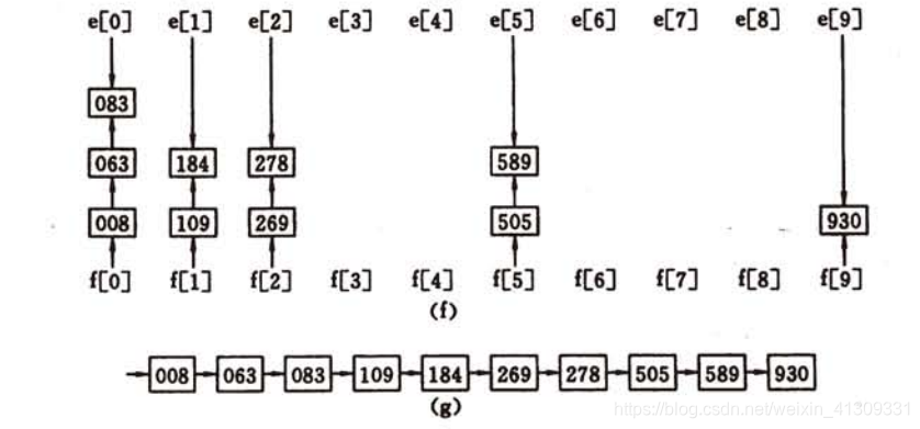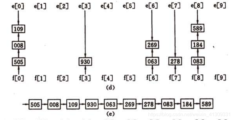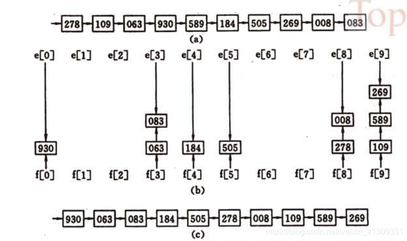 最后针对上面得到的结果序列,进行百位上的分配,依次取出项数,得到百位上正序的序列: