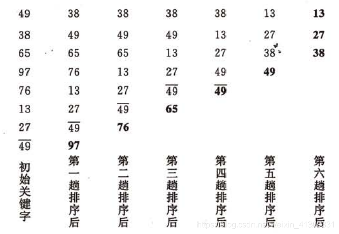看,就像泡泡一样,每一趟最大的数总是会浮上来。