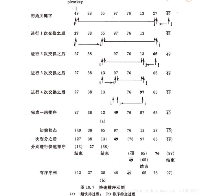 4. 重复上述过程,可以看出,这是一个递归定义。通过递归将左侧部分排好序后,再递归排好右侧部分的顺序。当左、右两个部分各数据排序完成后,整个数组的排序也就完成了。