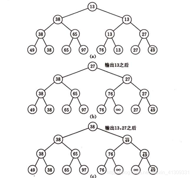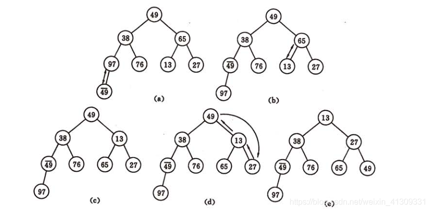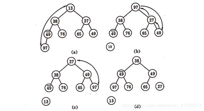 树形选择排序尚有辅助存储空间较多、和“最大值”进行多余的比较等缺点。为了弥补它的缺点,推排序出现了。