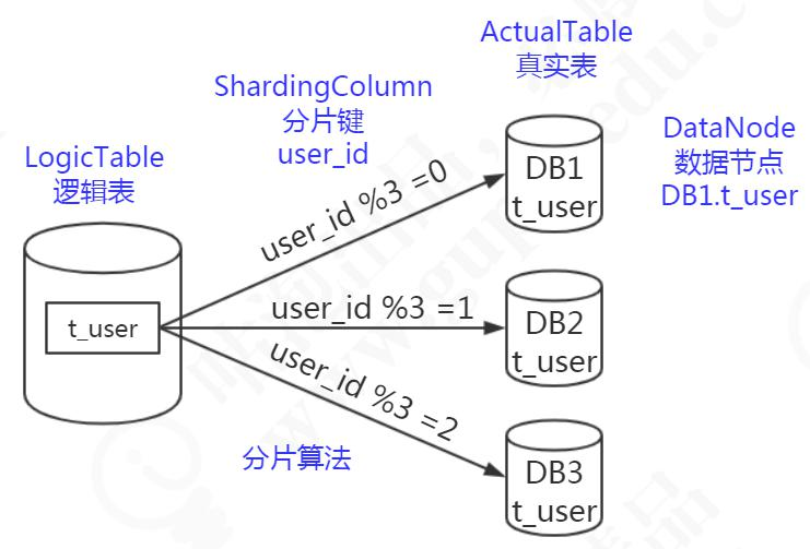t_order_0到t_order_9,他们的逻辑表名为t_order。 - 真实表:在分片的数据库中真实存在的物理表。即上个示例中的