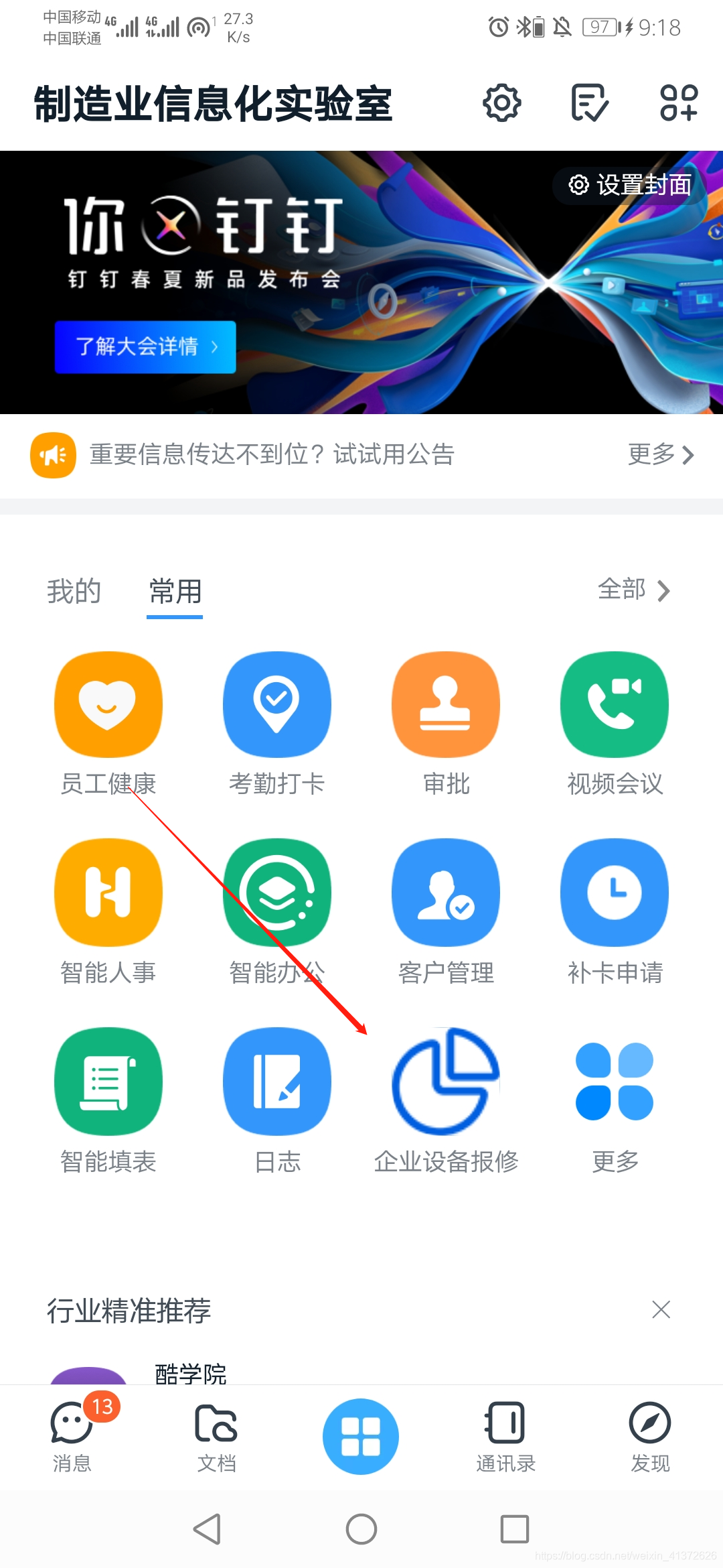 完成全部工作完成后可以在钉钉客户端的工作台中看到这个应用: