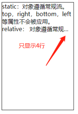 <p> static:对象遵循常规流。top,right,bottom,left等属性不会被应用。 relative: 对象遵循常规流,并且参照自身在常规流中的位置通过top,right,bottom,left属性进行偏移时不影响常规流中的任何元素。 absolute:对象脱离常规流,使用top,right,bottom,left等属性进行绝对定位,