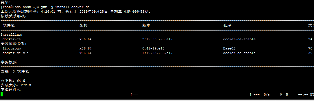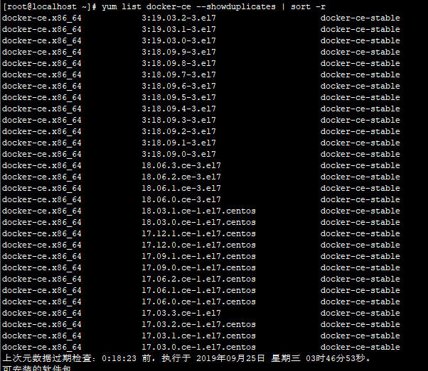 [root@localhost ~]# yum list docker-ce --showduplicates | sort -r --检查相应的软件包版本