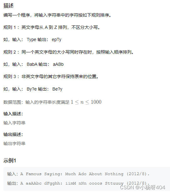 一、字符串加解密描述对输入的字符串进行加解密,并输出。加密方法为:当内容是英文字母时则用该英文字母的后一个字母替换,同时字母变换大小写,如字母a时则替换为B;字母Z时则替换为a;当内容是数字时则把该数字加1,如0替换1,1替换2,9替换0;其他字符不做变化。解密方法为加密的逆过程。数据范围:输入的两个字符串长度满足1 \le n \le 1000 \1≤n≤1000,保证输入的字符串都是只由大小写字母或者数字组成输入描述:第一行输入一串要加密的密码第二行输入...