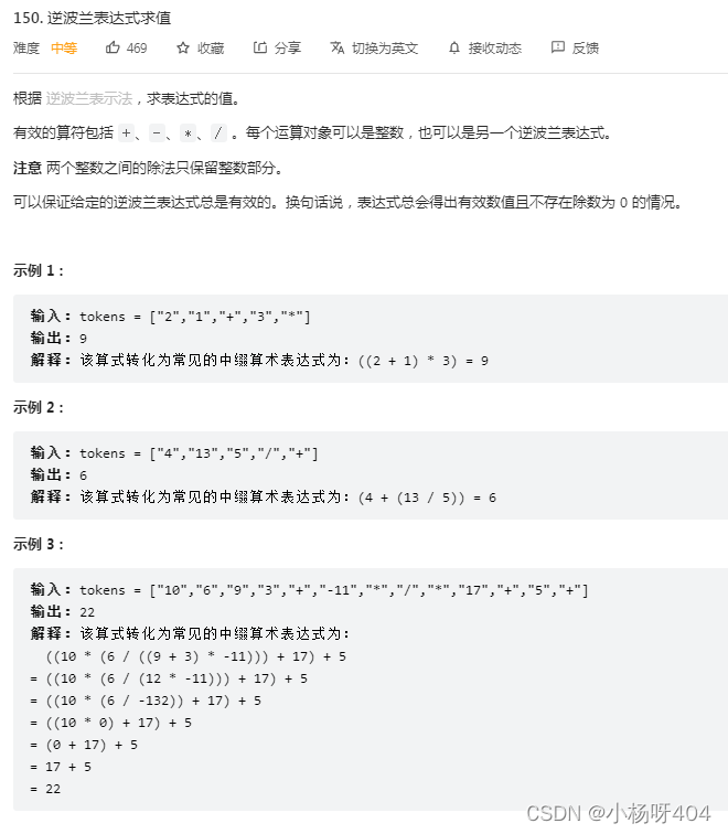 思路:使用pop和append函数模拟堆栈,元素依次入栈,遇到运算符弹出两个元素进行运算,并将结果再压入堆栈。注意:力扣里面复数是向下取整的,也就是说你的除法计算结果如果是-0.05,他会记为-1,而我们想要的是0.我的解决方式是先转为浮点型计算,再将结果取整型。原题如下:通过代码如下:class Solution(object): def evalRPN(self, tokens): """ :type tokens: List[str] .