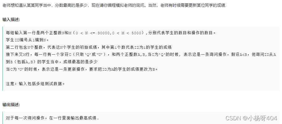 题目:思路:这个题要注意有个坑,我就在这卡了一会,输入有多组,我是用异常处理做的。另外要注意AB的大小,A可能大于B。然后就分情况讨论就好了,找出最大值,我是把AB间学生的分数存进了一个列表,然后取max,剩下部分没什么特别。代码:for i in range(1000): try: n, m = map(int, input().split()) begin = list(map(int, input().split())) .