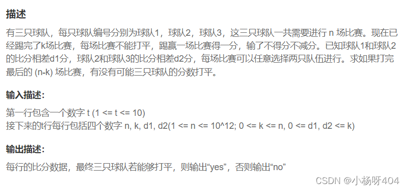 【牛客·字节】ZJ2 编程题1 球队比赛是否能打平