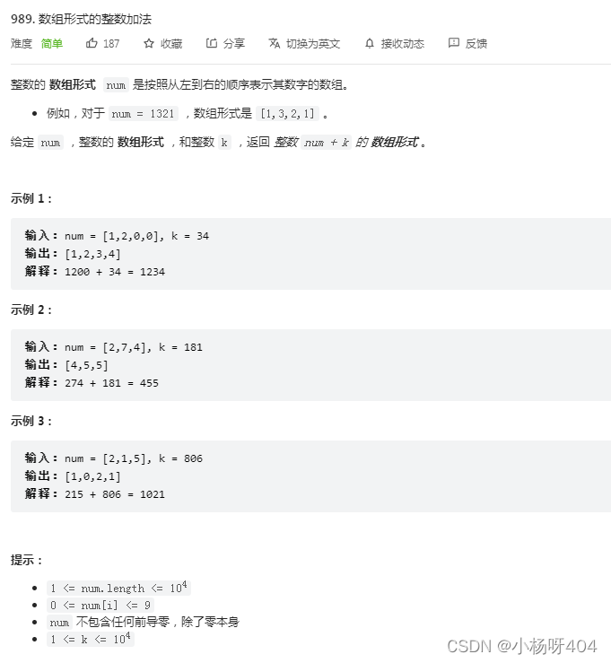 【力扣·数组形式的整数加法】Python解法